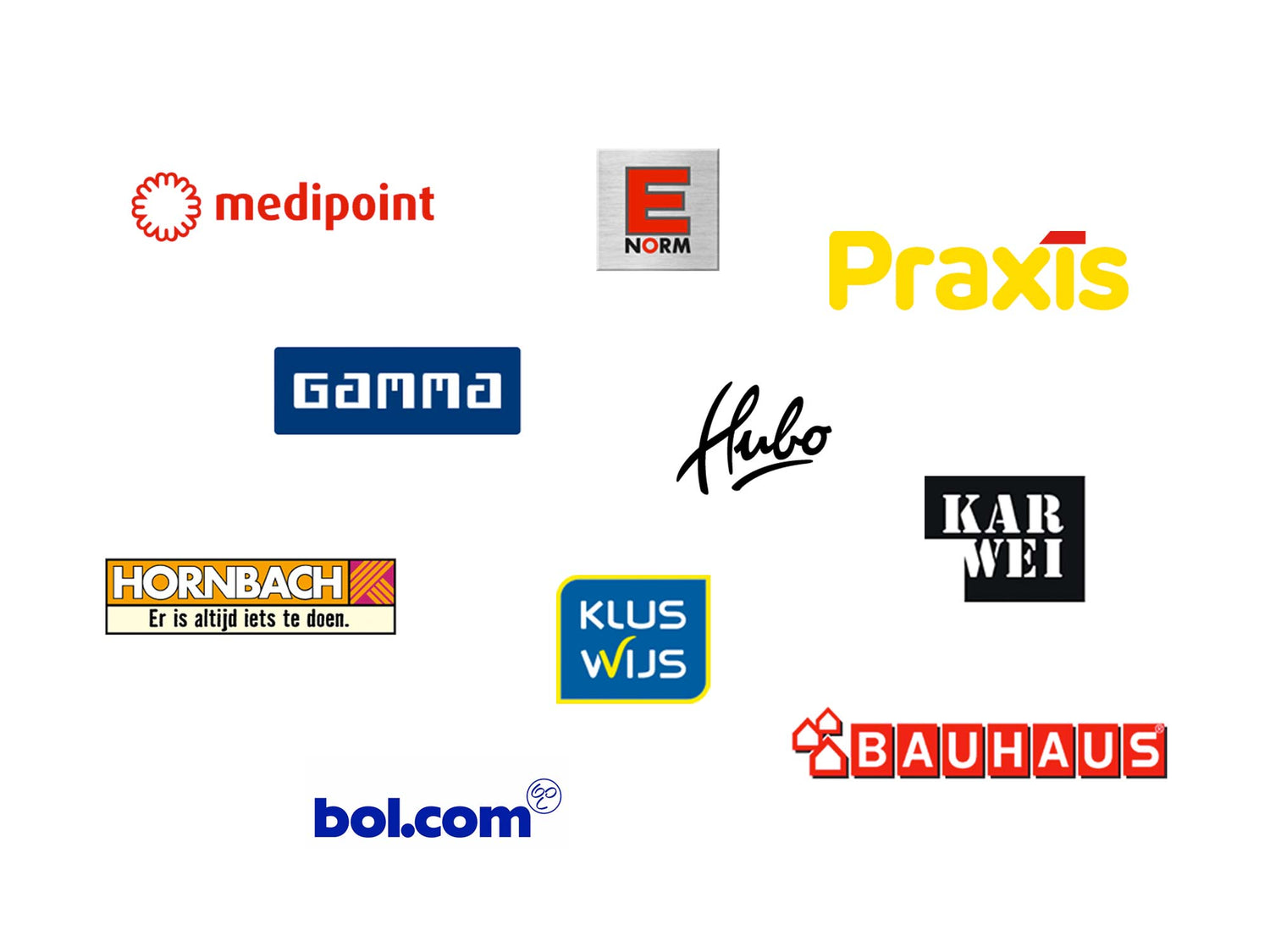 Ook verkrijgbaar bij de bouwgroothandel (voor de professional) en zorgwinkels.
