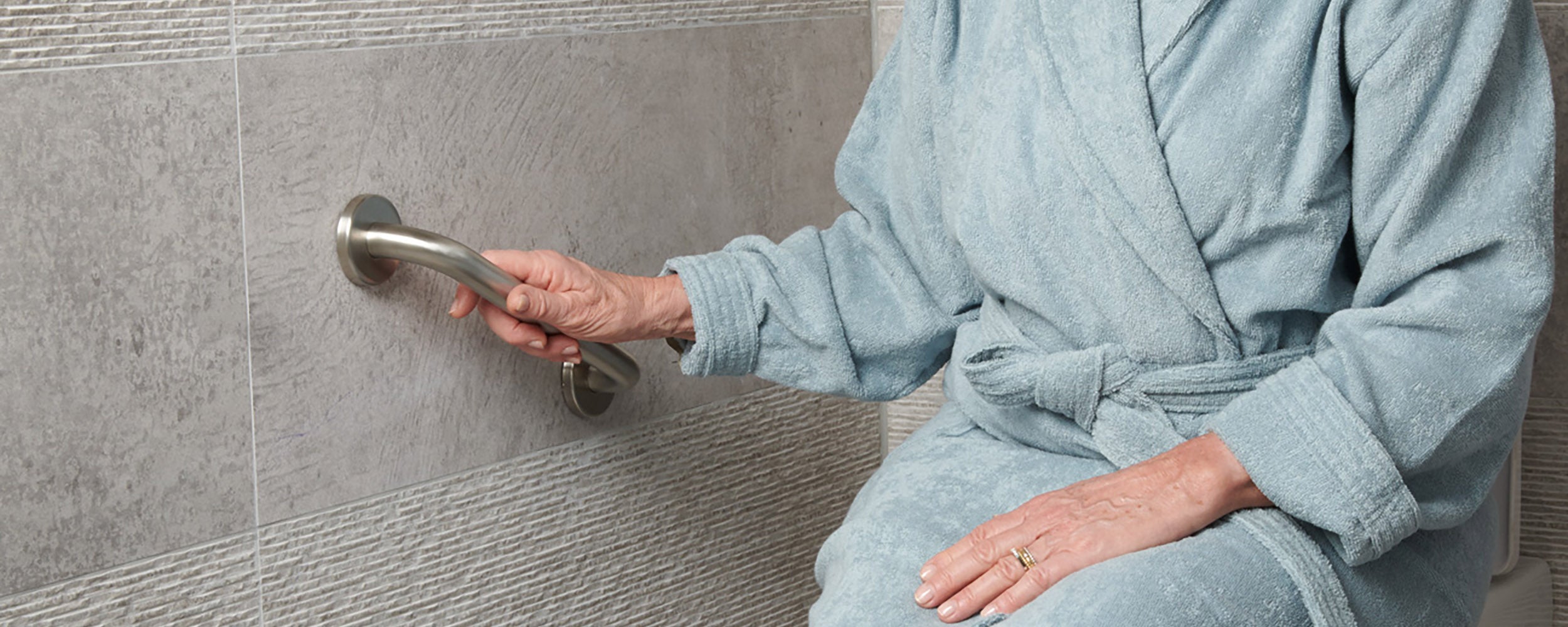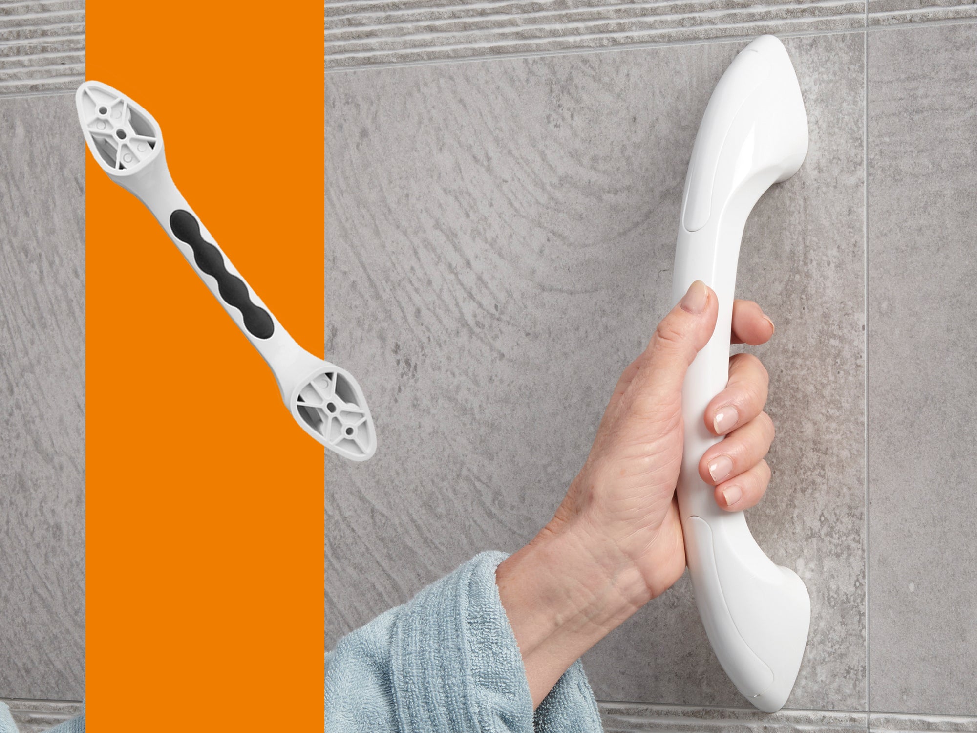 De SecuCare Wandbeugel Curve geeft extra steun in droge en natte ruimtes binnenshuis. Het voorkomt